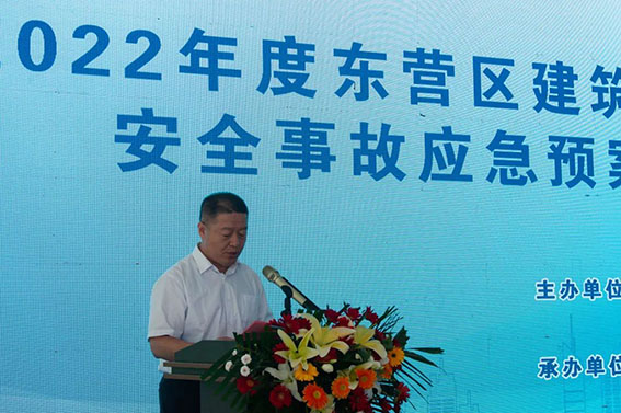 東營區(qū)建設工程管理服務中心副主任馬利光主持本次演練。東營區(qū)文匯街道辦事處主任安飛飛宣布東營區(qū)建筑施工生產安全事故應急演練開始。