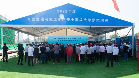 為了確??茖W、及時、有效地組織應對事故,提高處置突發(fā)事件能力,6月25日,2022年度東營區(qū)建筑施工生產安全事故應急預案演練在天華實業(yè)集團承建的吾悅首府項目現(xiàn)場成功舉行。