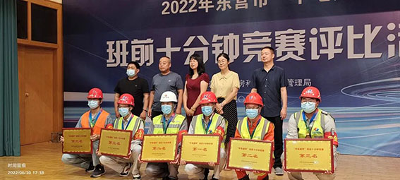 為進(jìn)一步規(guī)范一線建筑施工作業(yè)人員現(xiàn)場(chǎng)安全教育培訓(xùn)活動(dòng),6月27日,東營市住房和城鄉(xiāng)建設(shè)管理局組織開展“中電建杯”班前十分鐘競(jìng)賽活動(dòng)。在競(jìng)賽活動(dòng)中,由許愛文、趙吉遠(yuǎn)、蓋建峰、馬成彬、曹健元、劉強(qiáng)和王立明組成的天華代表隊(duì)從14支參賽隊(duì)伍中脫穎而出,一舉摘得競(jìng)賽二等獎(jiǎng)。