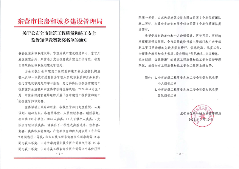 據(jù)了解,為全面提升全市建筑工程質量和施工安全監(jiān)督機構監(jiān)督人員和一線技術質量安全管理人員政治素質和業(yè)務素質,全力營造比學趕超的學習氛圍,助力參賽隊伍在全省建筑工程質量安全監(jiān)督知識競賽中獲得優(yōu)異成績,2022年4月至6月,市住房城建管理局組織開展了全市建筑工程質量和施工安全監(jiān)督知識競賽。