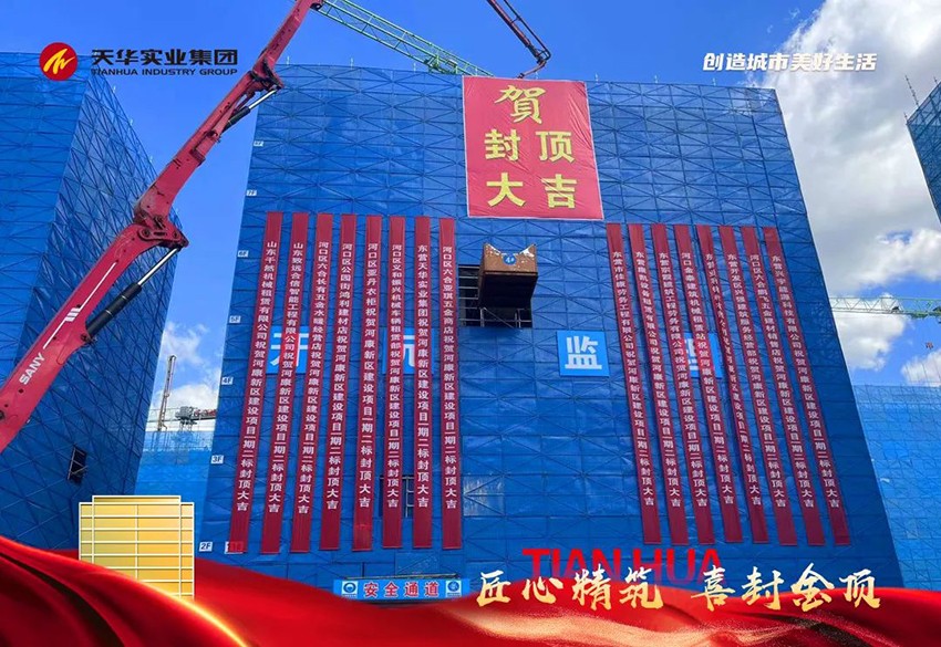 天華實(shí)業(yè)集團(tuán)河康新區(qū)一期二標(biāo)段10#樓、11#樓喜封金頂