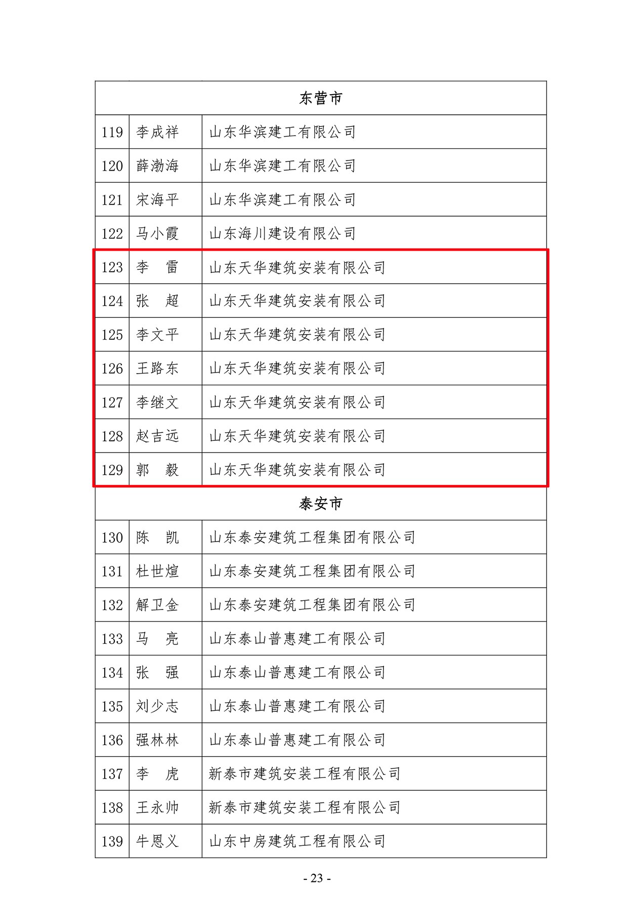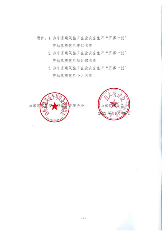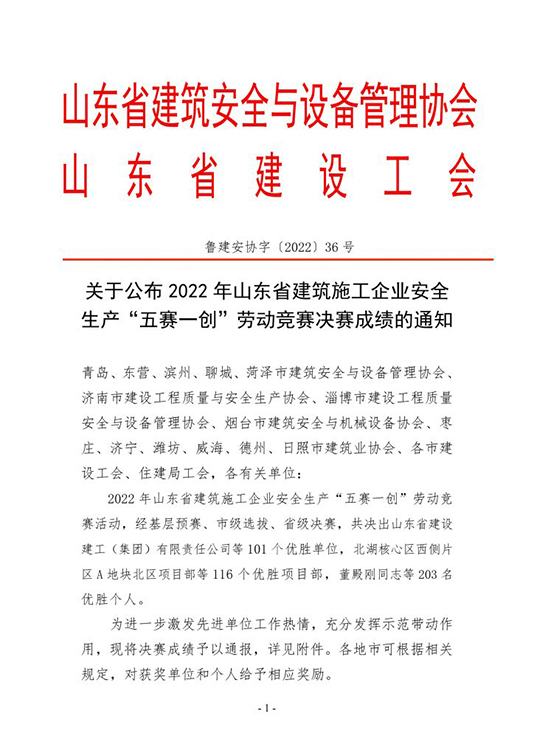 李雷、張超、李文平、王路東、李繼文、趙吉遠、郭毅榮獲“山東省建筑施工企業(yè)安全生產(chǎn)‘五賽一創(chuàng)’勞動競賽優(yōu)勝個人”稱號。