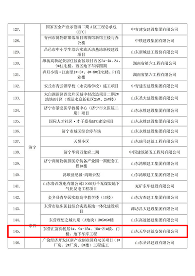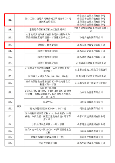 近日,山東省建筑安全與設(shè)備管理協(xié)會(huì)公布了華東地區(qū)建筑施工安全生產(chǎn)標(biāo)準(zhǔn)化工地名單和2022年建設(shè)工程項(xiàng)目施工工地安全生產(chǎn)標(biāo)準(zhǔn)化學(xué)習(xí)交流項(xiàng)目名單。天華實(shí)業(yè)集團(tuán)承建的碧桂園·翹楚棠項(xiàng)目榮獲“華東地區(qū)建筑施工安全生產(chǎn)標(biāo)準(zhǔn)化工地”稱號(hào);東營(yíng)匯富尚悅居1#、9#、15#、18#、21#樓項(xiàng)目、河康新區(qū)建設(shè)項(xiàng)目和碧桂園·翹楚棠項(xiàng)目榮獲山東省“2022年建設(shè)工程項(xiàng)目施工工地安全生產(chǎn)標(biāo)準(zhǔn)化學(xué)習(xí)交流項(xiàng)目”稱號(hào)。