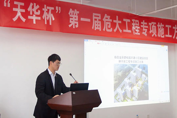 5月27日,天華實(shí)業(yè)集團(tuán)第一屆危大工程專項(xiàng)施工方案編制技能競(jìng)賽在集團(tuán)公司成功舉辦。集團(tuán)副總經(jīng)理徐帥菊、安全總監(jiān)商雷雷、評(píng)委組和參賽選手等共同參加本次活動(dòng)。本次競(jìng)賽由工程部李繼文主持。