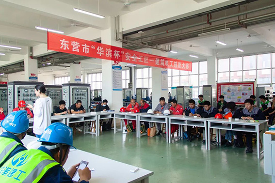 東營市住房和城鄉(xiāng)建設(shè)管理局黨組成員、副局長徐競科,市技師學(xué)院黨委委員、東營市中等專業(yè)學(xué)校黨總支書記趙壽亭,市建設(shè)工程安全與設(shè)備管理協(xié)會(huì)會(huì)長商雷雷,市住房和城鄉(xiāng)建設(shè)管理局工會(huì)負(fù)責(zé)人任鳳,山東華濱建工有限公司總經(jīng)理孟凡國,各縣區(qū)、市屬開發(fā)區(qū),省黃三角農(nóng)高區(qū)住房城鄉(xiāng)建設(shè)局安全監(jiān)督管理機(jī)構(gòu)有關(guān)同志,參賽選手以及市技師學(xué)院電力工程專業(yè)的學(xué)生等 60 余人出席大賽。市建設(shè)工程施工安全管理站站長楊海峰主持大賽。