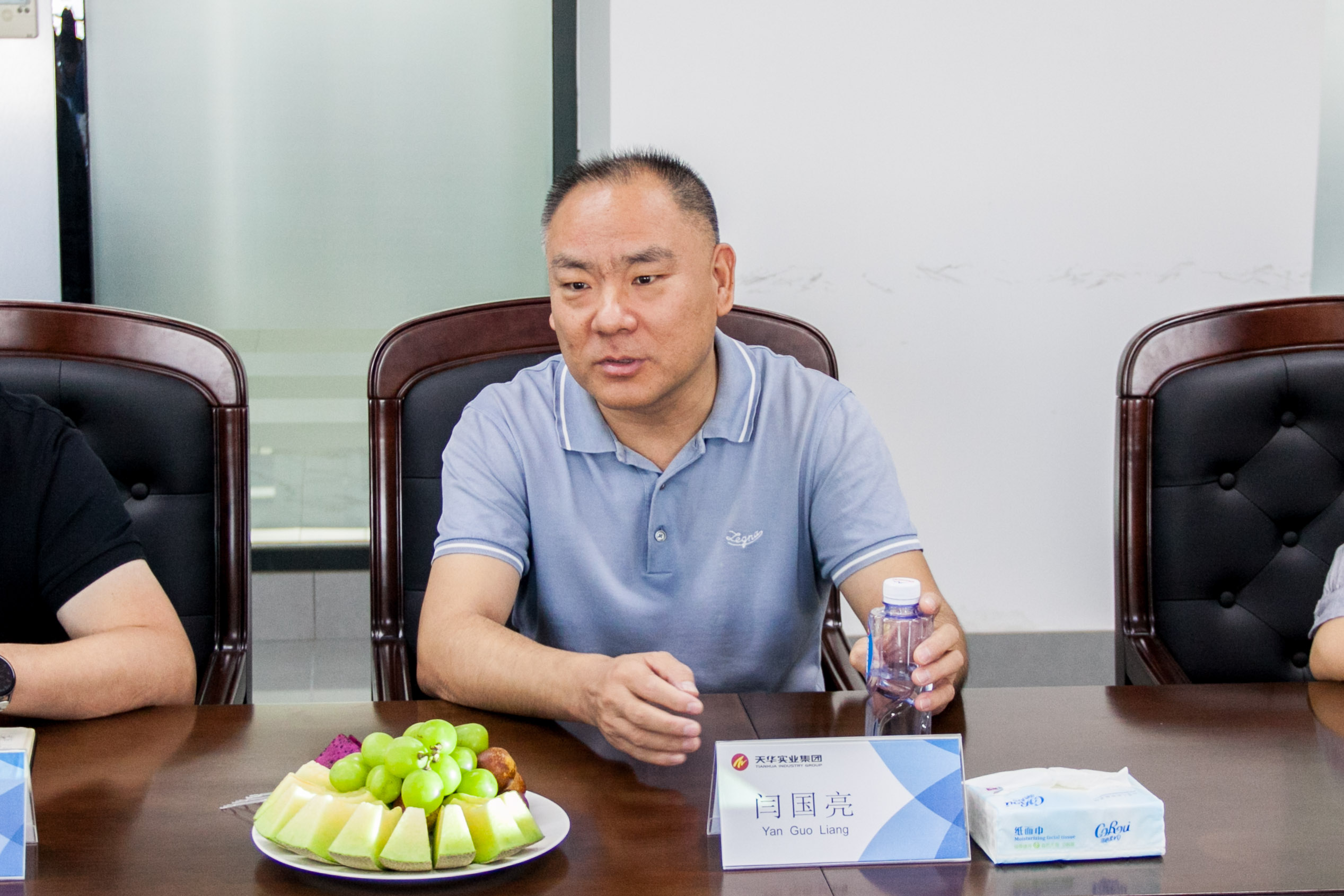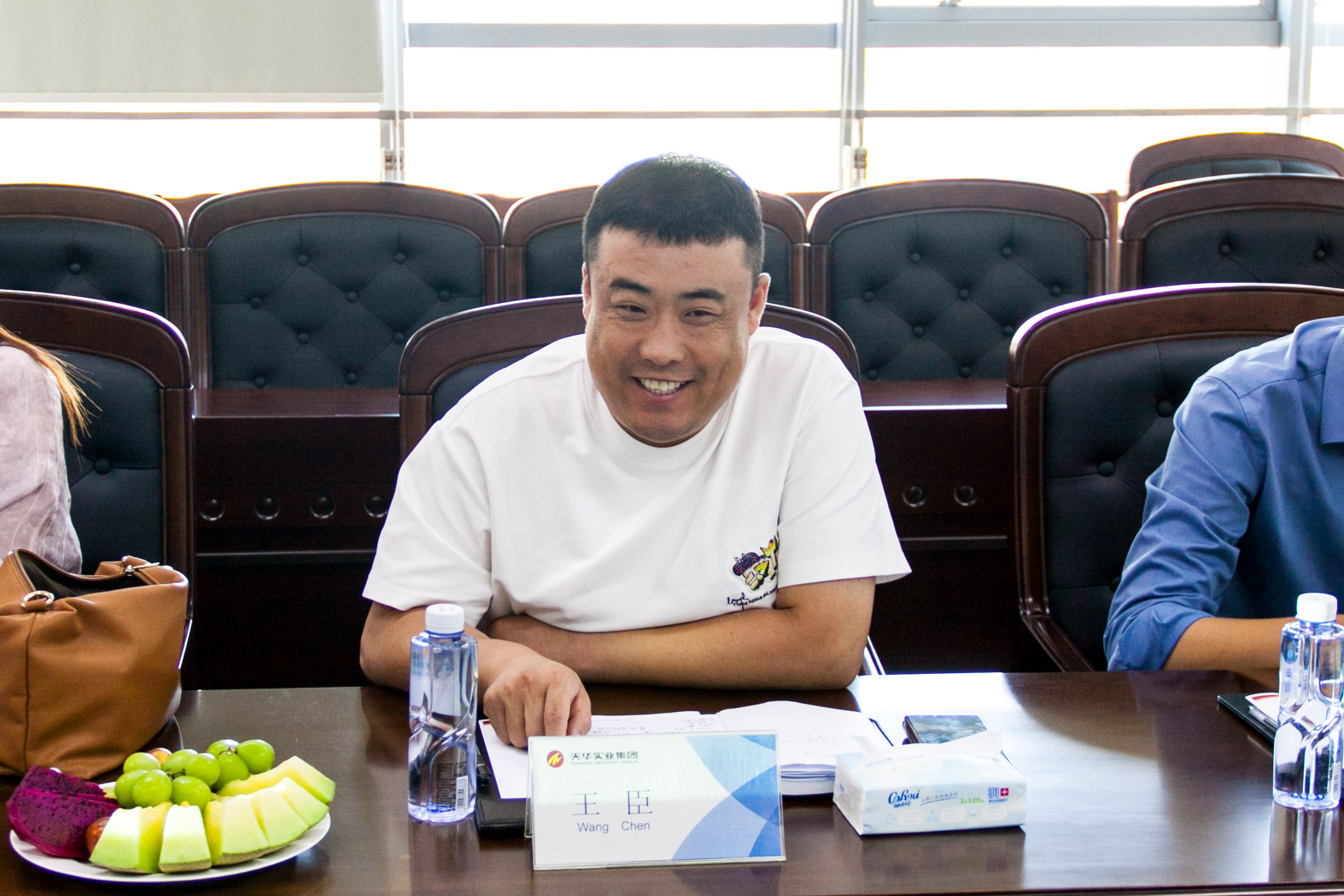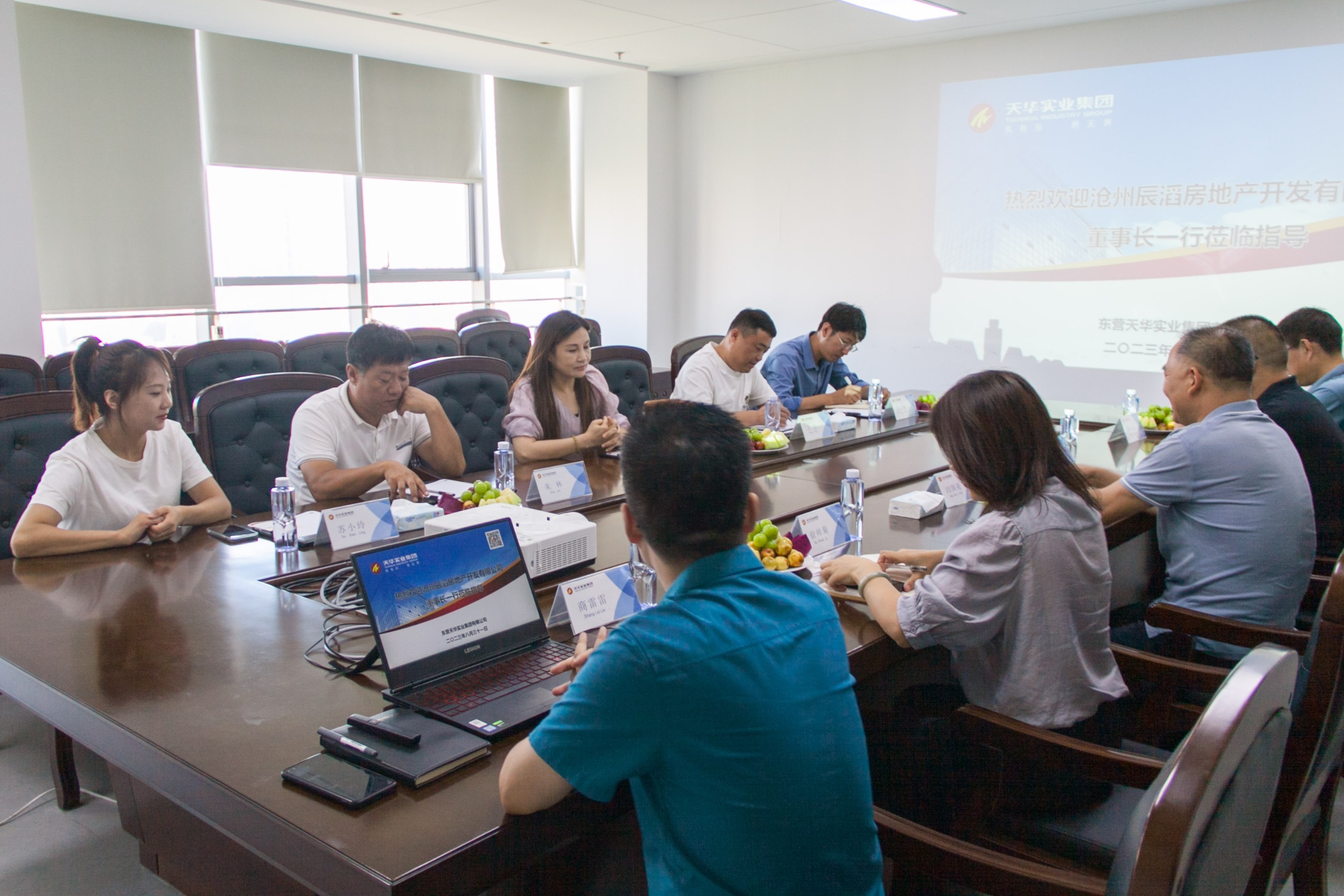 8月31日上午,滄州辰滔房地產(chǎn)開發(fā)有限公司副董事長韓玉、總經(jīng)理王臣一行到天華實業(yè)集團(tuán)進(jìn)行考察交流,天華集團(tuán)董事長閆國亮熱情接待并陪同,雙方就促進(jìn)項目合作開展座談。