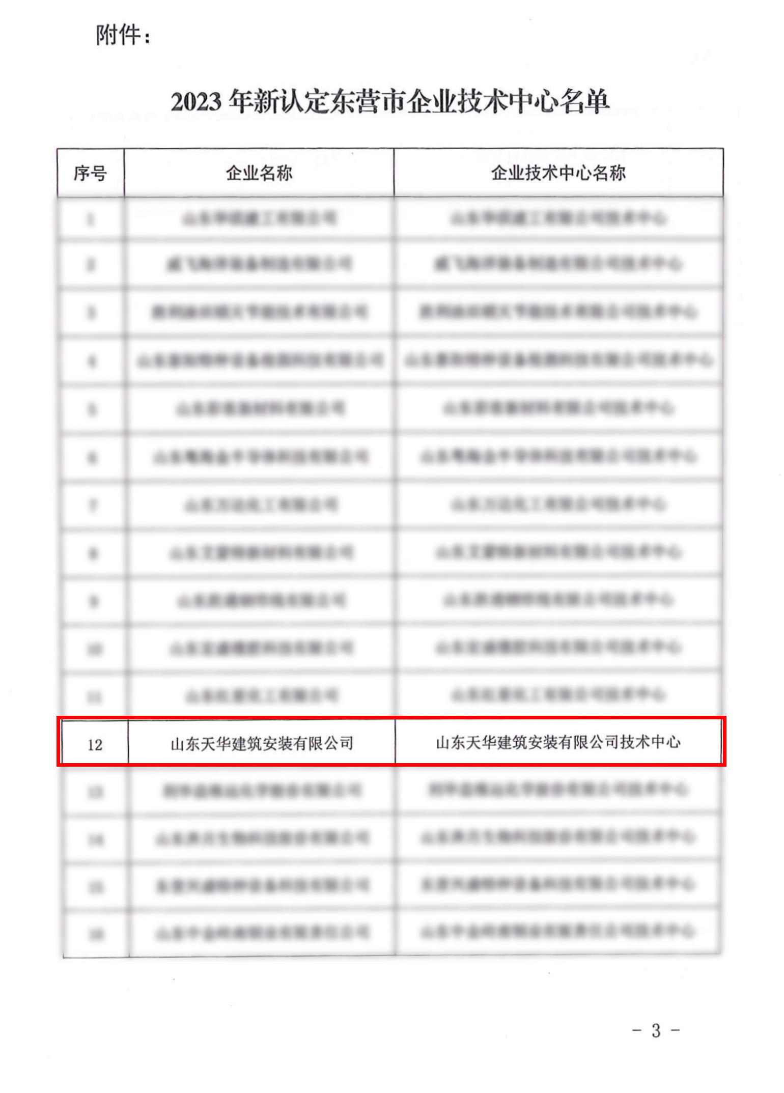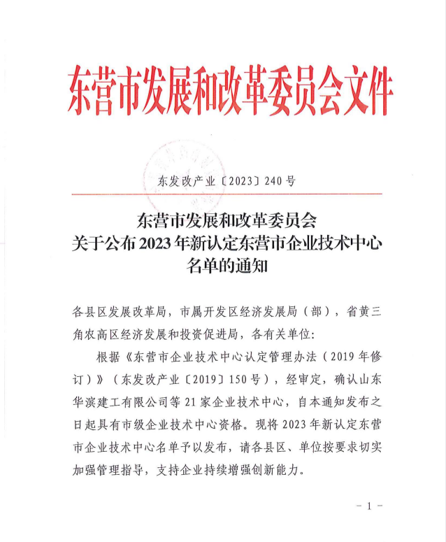 9月5日,東營(yíng)市發(fā)展和改革委員會(huì)發(fā)布了《關(guān)于公布2023年新認(rèn)定東營(yíng)市企業(yè)技術(shù)中心名單的通知》,天華實(shí)業(yè)集團(tuán)被認(rèn)定為東營(yíng)市企業(yè)技術(shù)中心。