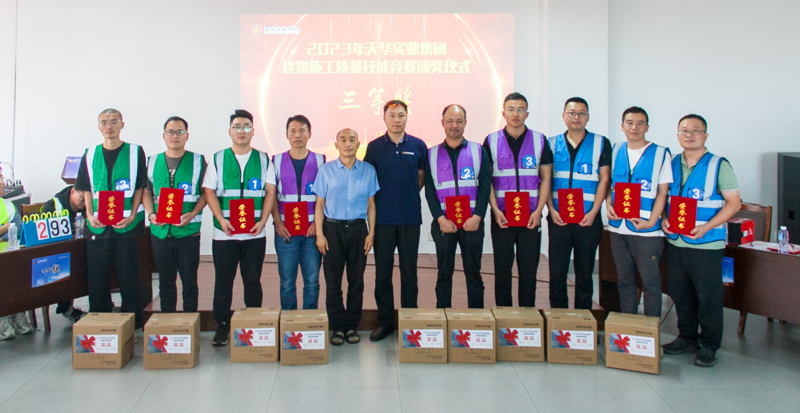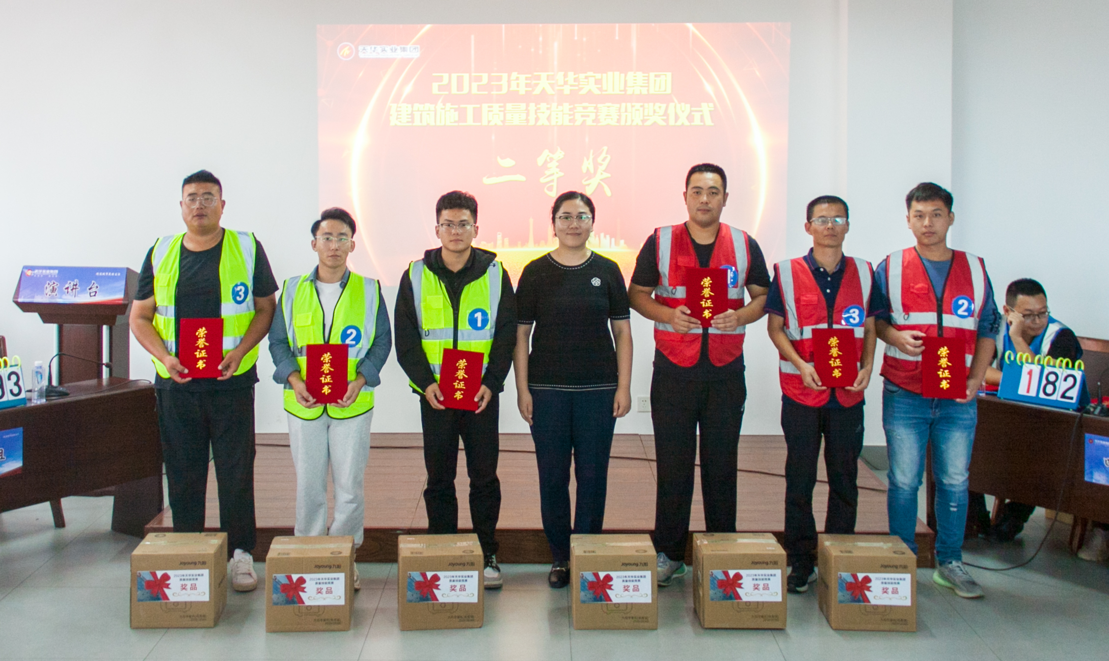 天華實(shí)業(yè)集團(tuán)安全總監(jiān)商雷雷為優(yōu)秀選手頒發(fā)了榮譽(yù)證書和獎(jiǎng)品。天華實(shí)業(yè)集團(tuán)副總經(jīng)理徐帥菊,綜合部副經(jīng)理張鳳霞,總工程師李連珍、技術(shù)負(fù)責(zé)人邢永芝分別為獲得一、二、三等獎(jiǎng)的選手頒發(fā)了榮譽(yù)證書和獎(jiǎng)品。
