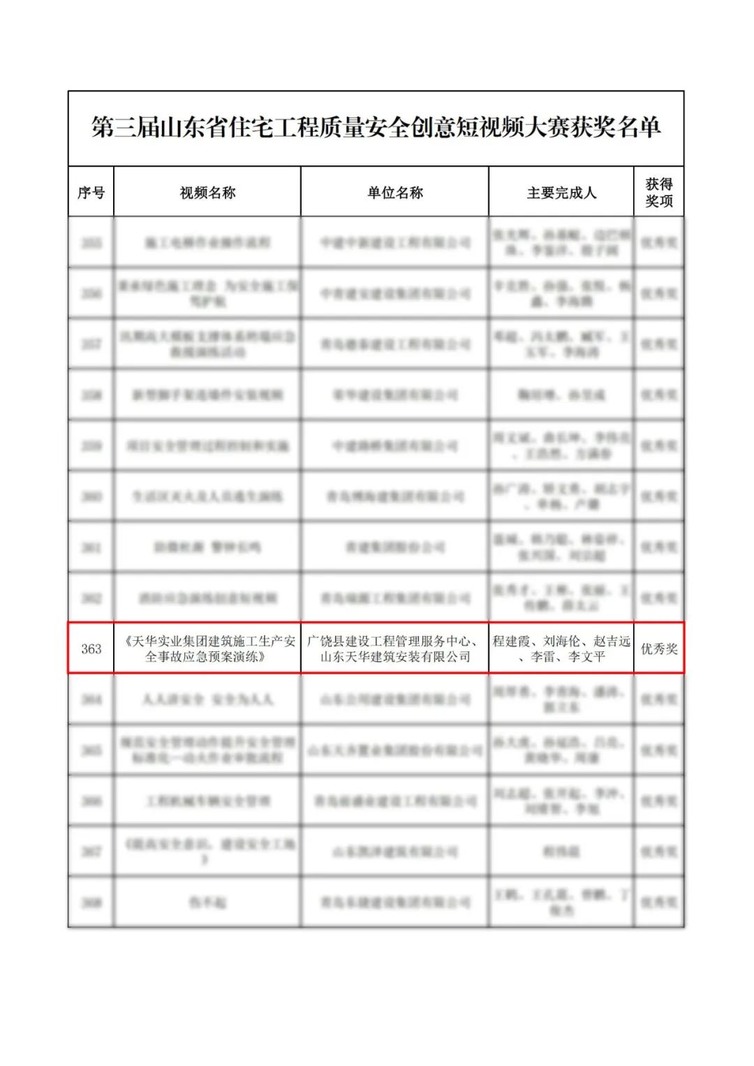 近日,由山東省建設(shè)工會(huì)委員會(huì)、山東省住房和城鄉(xiāng)建設(shè)廳精神文明建設(shè)辦公室、山東省建設(shè)工程質(zhì)量安全中心聯(lián)合主辦的第三屆山東省住宅工程質(zhì)量安全創(chuàng)意短視頻大賽獲獎(jiǎng)名單公布,天華實(shí)業(yè)集團(tuán)報(bào)送的參賽作品《天華實(shí)業(yè)集團(tuán)建筑施工生產(chǎn)安全事故應(yīng)急預(yù)案演練》榮獲優(yōu)秀獎(jiǎng)。