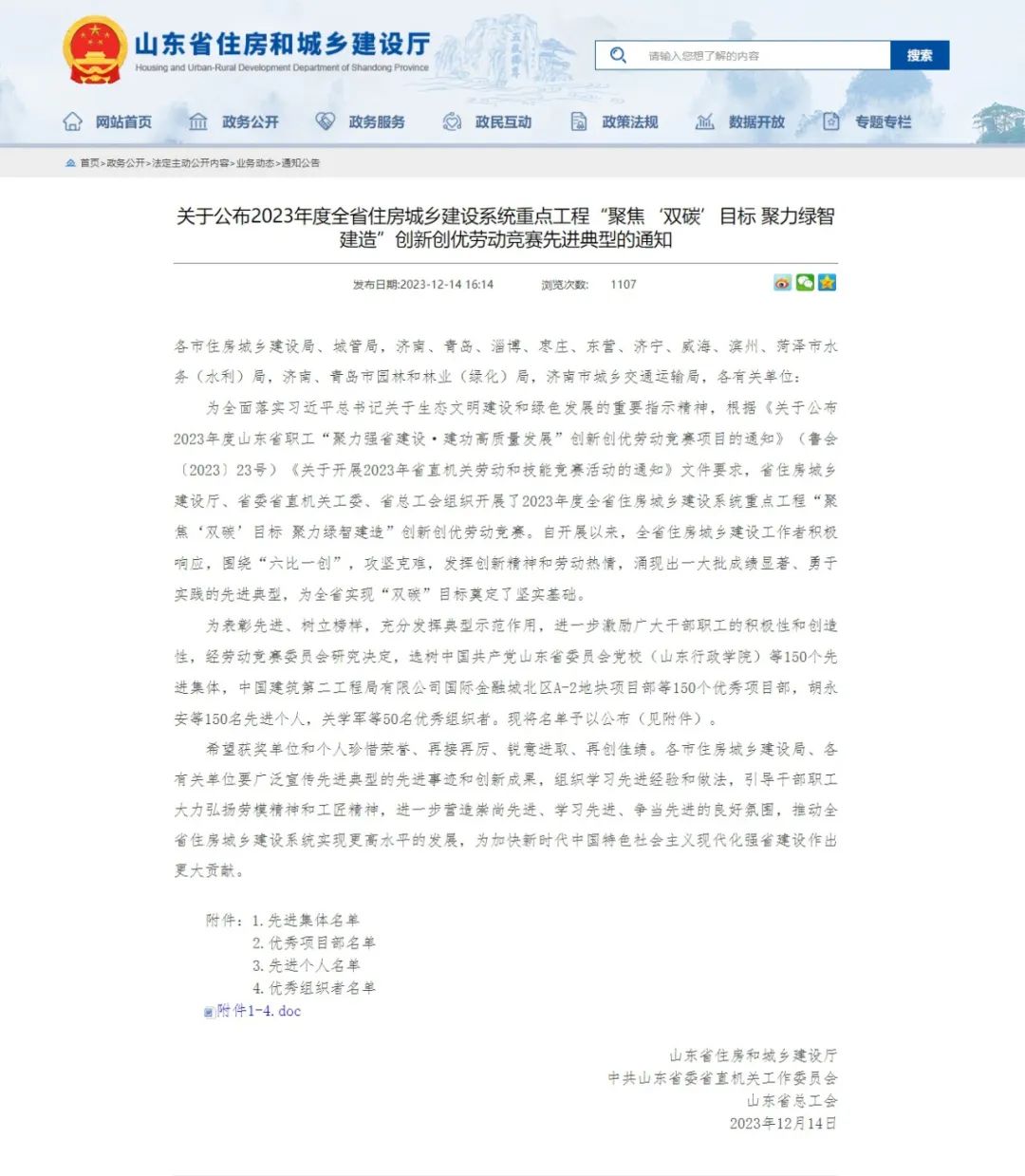 近日,山東省住房和城鄉(xiāng)建設(shè)廳、中共山東省委省直機(jī)關(guān)工作委員會(huì)、山東省總工會(huì)三部門(mén)聯(lián)合發(fā)布了《關(guān)于公布2023年度全省住房城鄉(xiāng)建設(shè)系統(tǒng)重點(diǎn)工程“聚焦‘雙碳’目標(biāo) 聚力綠智建造”創(chuàng)新創(chuàng)優(yōu)勞動(dòng)競(jìng)賽先進(jìn)典型的通知》,經(jīng)申報(bào)、初評(píng)、復(fù)評(píng)、終審四個(gè)階段激烈競(jìng)爭(zhēng),天華集團(tuán)榮獲“2023年度山東省住房城鄉(xiāng)建設(shè)系統(tǒng)重點(diǎn)工程創(chuàng)新創(chuàng)優(yōu)勞動(dòng)競(jìng)賽先進(jìn)集體”稱(chēng)號(hào)。