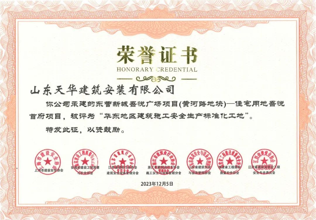 近日,山東省建筑安全與設(shè)備管理協(xié)會公布2023年度《華東地區(qū)建筑施工安全生產(chǎn)標(biāo)準(zhǔn)化工地名單》,由天華實(shí)業(yè)集團(tuán)承建的東營新城吾悅首府項(xiàng)目獲此殊榮。