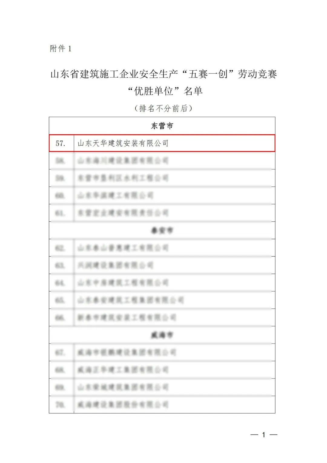 近日,山東省建筑安全與設(shè)備管理協(xié)會、山東省建設(shè)工會公布了《關(guān)于2023年山東省建筑施工企業(yè)安全生產(chǎn)“五賽一創(chuàng)”勞動競賽決賽成績的公示》,天華實業(yè)集團榮獲“優(yōu)勝單位”、“優(yōu)勝項目部”及“優(yōu)勝個人”多項榮譽稱號。