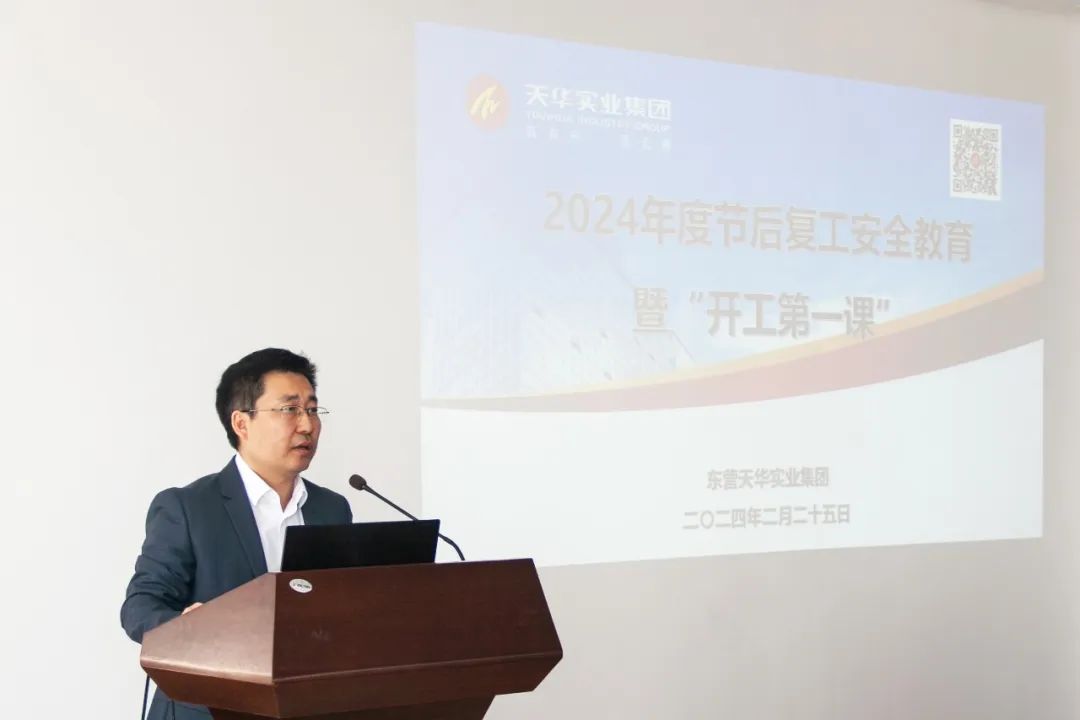 2月26日,天華實業(yè)集團組織召開了2024年度節(jié)后復(fù)工安全教育“開工第一課”,深入貫徹落實省、市、區(qū)關(guān)于安全生產(chǎn)工作決策部署,落實全員安全生產(chǎn)責(zé)任,防范復(fù)工復(fù)產(chǎn)期間各類生產(chǎn)安全事故發(fā)生,切實將安全生產(chǎn)工作抓早、抓細(xì)、抓實,守好安全“責(zé)任田”,為實現(xiàn)"首季紅"保駕護航!集團董事長、總經(jīng)理閆國亮出席會議,集團領(lǐng)導(dǎo)班子、各職能部室及分公司全體人員、分公司經(jīng)理、項目經(jīng)理參加會議。