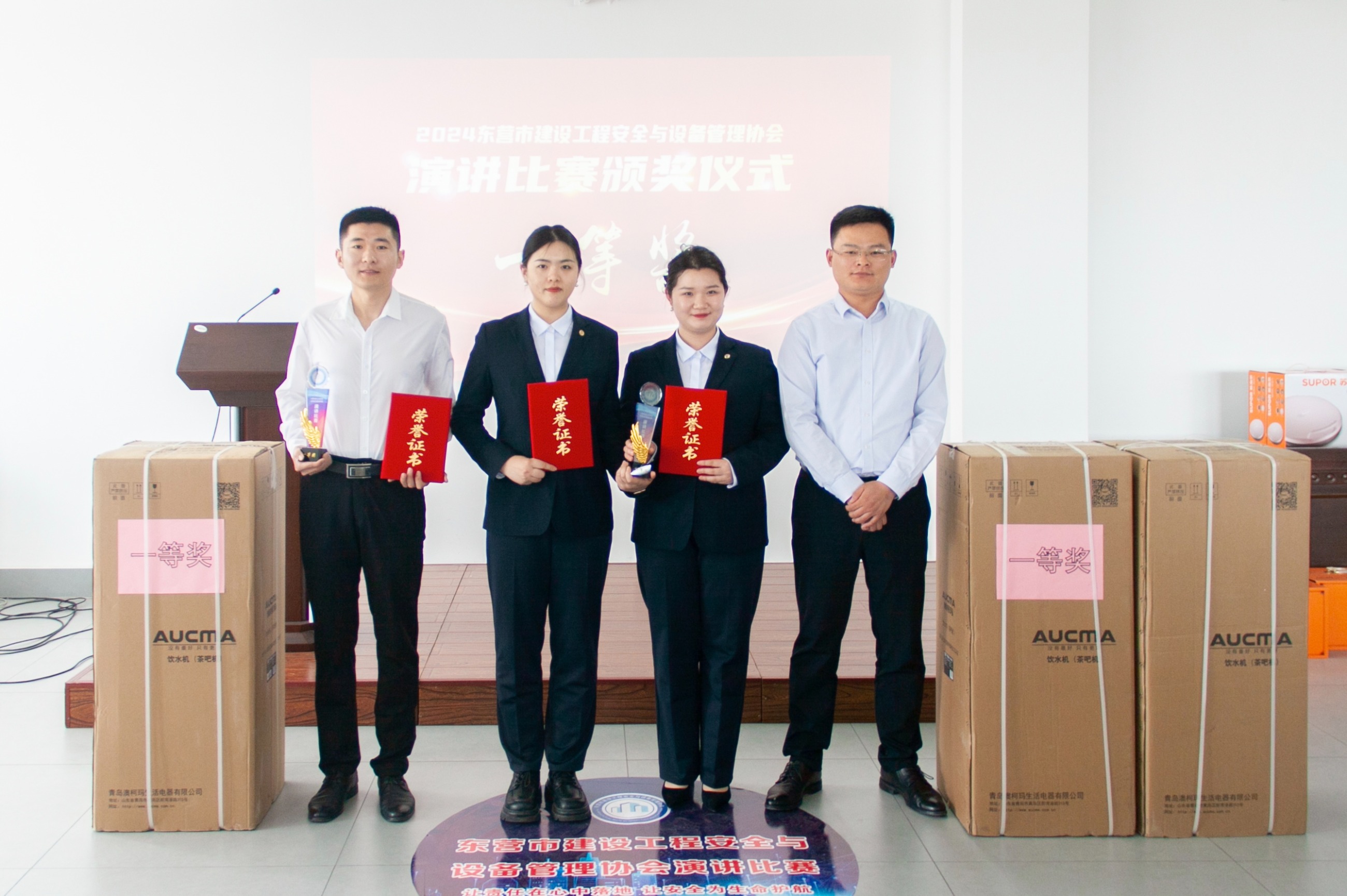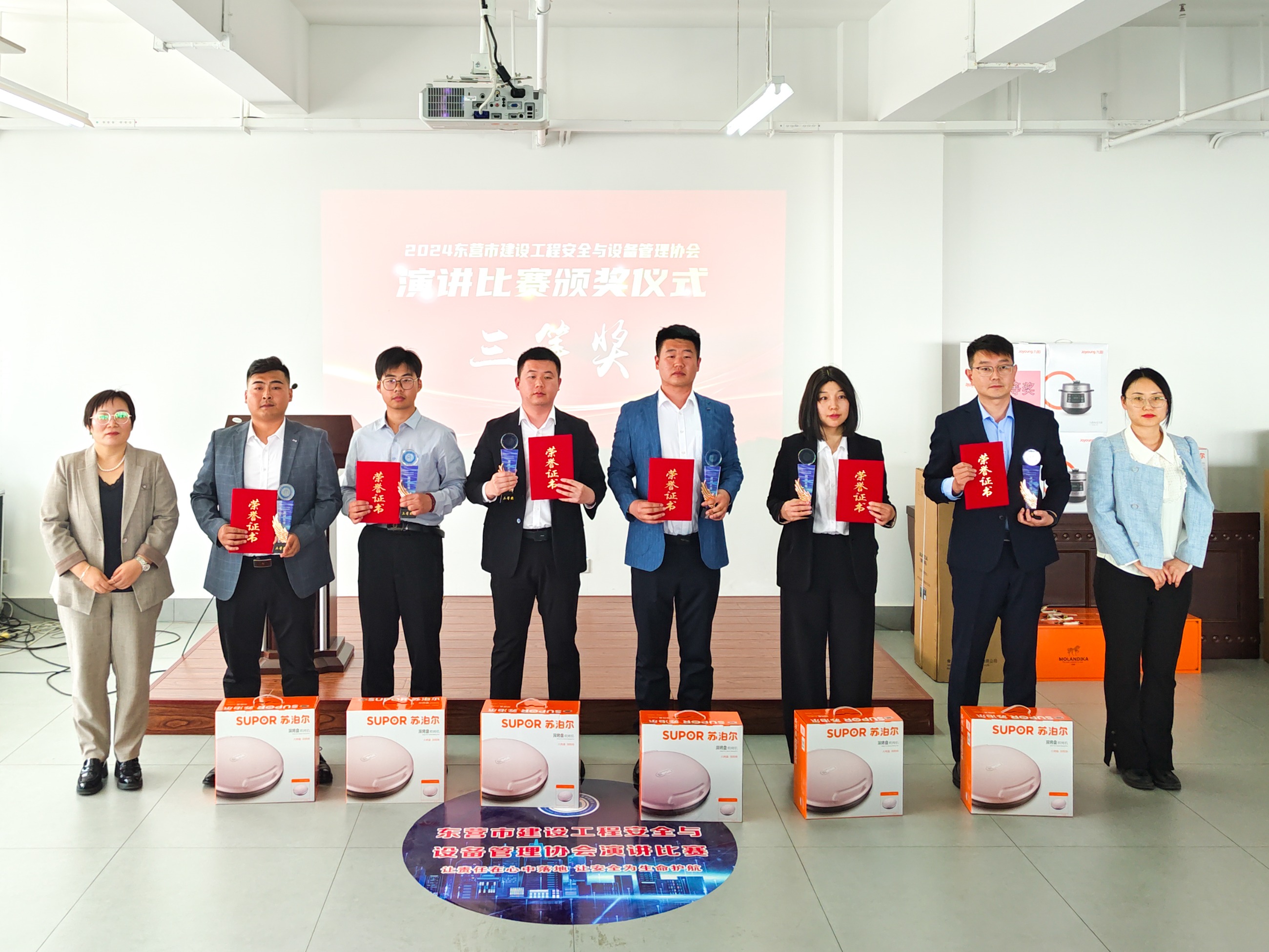 山東天華建筑安裝有限公司安全總監(jiān)商雷雷為優(yōu)秀組織獎(jiǎng)獲得者頒發(fā)了獎(jiǎng)牌。山東華濱建工有限公司經(jīng)理李成祥,山東萬達(dá)建安股份有限公司安全總監(jiān)王凱,山東海川建設(shè)集團(tuán)有限公司副總經(jīng)理馬曉霞、山東省源通建筑工程有限公司安全科副科長韓芳慶分別為獲得一、二、三等獎(jiǎng)的選手頒發(fā)了榮譽(yù)證書、獎(jiǎng)杯和獎(jiǎng)品。山東凱澤建筑有限公司安全總監(jiān)程偉晨、山東中建三威建筑設(shè)備有限公司副總經(jīng)理李建輝、山東金達(dá)源建工有限公司副總經(jīng)理韓冬、東營富海建筑安裝有限公司副總經(jīng)理孫良志為優(yōu)秀獎(jiǎng)選手頒發(fā)了榮譽(yù)證書和獎(jiǎng)品。