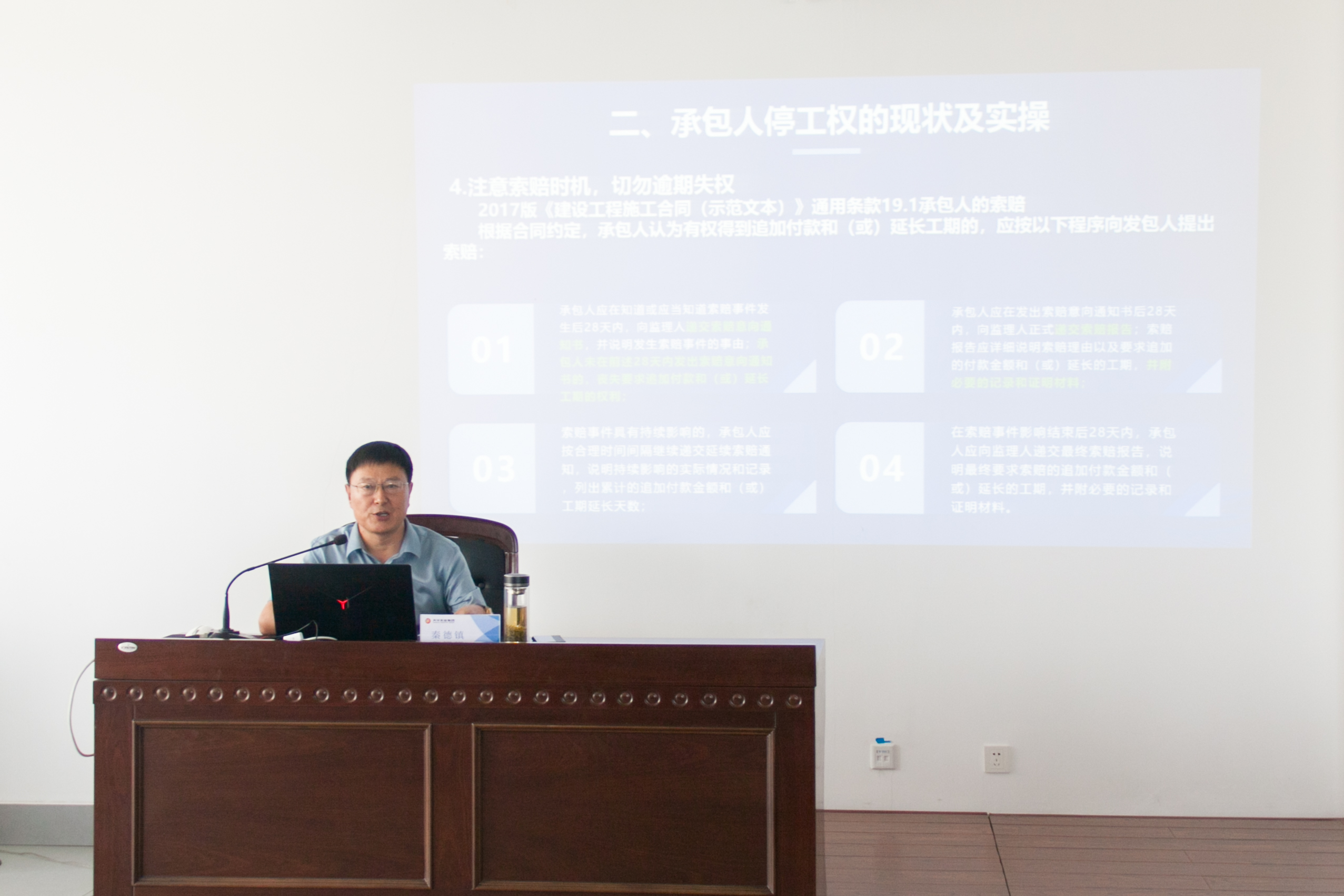 秦德鎮(zhèn)律師在培訓(xùn)開(kāi)始前強(qiáng)調(diào)了學(xué)法、懂法的重要性,倡導(dǎo)大家通過(guò)學(xué)習(xí)法律知識(shí)提高企業(yè)的抗風(fēng)險(xiǎn)能力,隨時(shí)保持對(duì)建工行業(yè)知識(shí)的不斷迭代更新,用專注的心做專業(yè)的事。