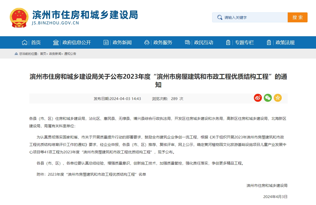 “濱州市建筑工程優(yōu)質(zhì)結(jié)構(gòu)工程”是濱州市建設(shè)工程主體結(jié)構(gòu)質(zhì)量的最高榮譽(yù),代表著全市各建筑企業(yè)施工質(zhì)量管理、建筑品質(zhì)的領(lǐng)先水平。