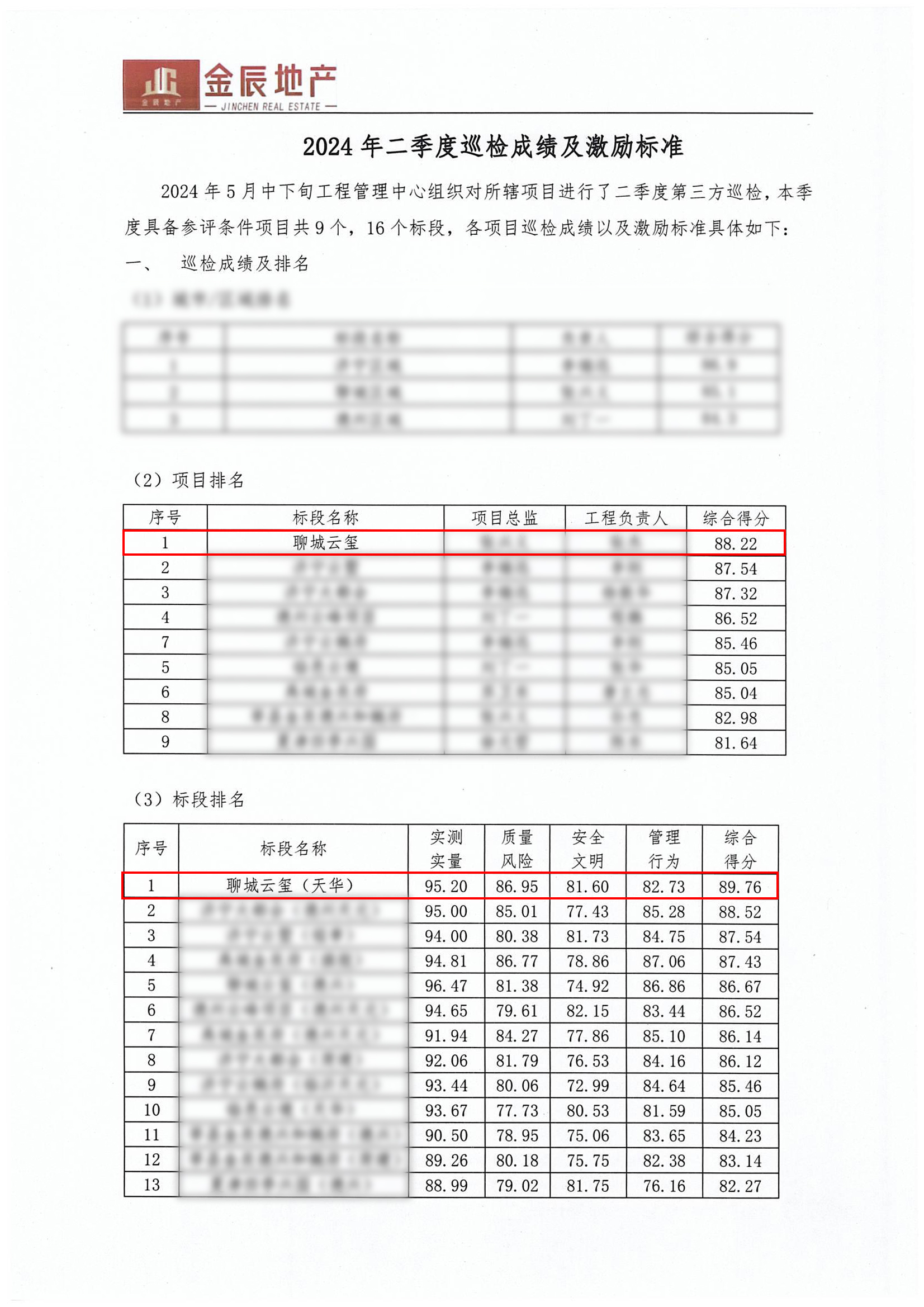 近日,德州金辰地產(chǎn)2024年二季度第三方巡檢圓滿謝幕。由天華實(shí)業(yè)集團(tuán)承建的聊城鐵投金辰·云璽項(xiàng)目,不負(fù)眾望,憑借嚴(yán)苛標(biāo)準(zhǔn)、過硬品質(zhì),在具備參評條件的9個(gè)項(xiàng)目、16個(gè)標(biāo)段中脫穎而出,榮獲綜合排名第一的優(yōu)異成績,并獲獎(jiǎng)金9000元。這份成績既是對項(xiàng)目部篤行實(shí)干、奮勇爭先的詮釋,也是對天華實(shí)業(yè)集團(tuán)現(xiàn)場管理能力的認(rèn)可。