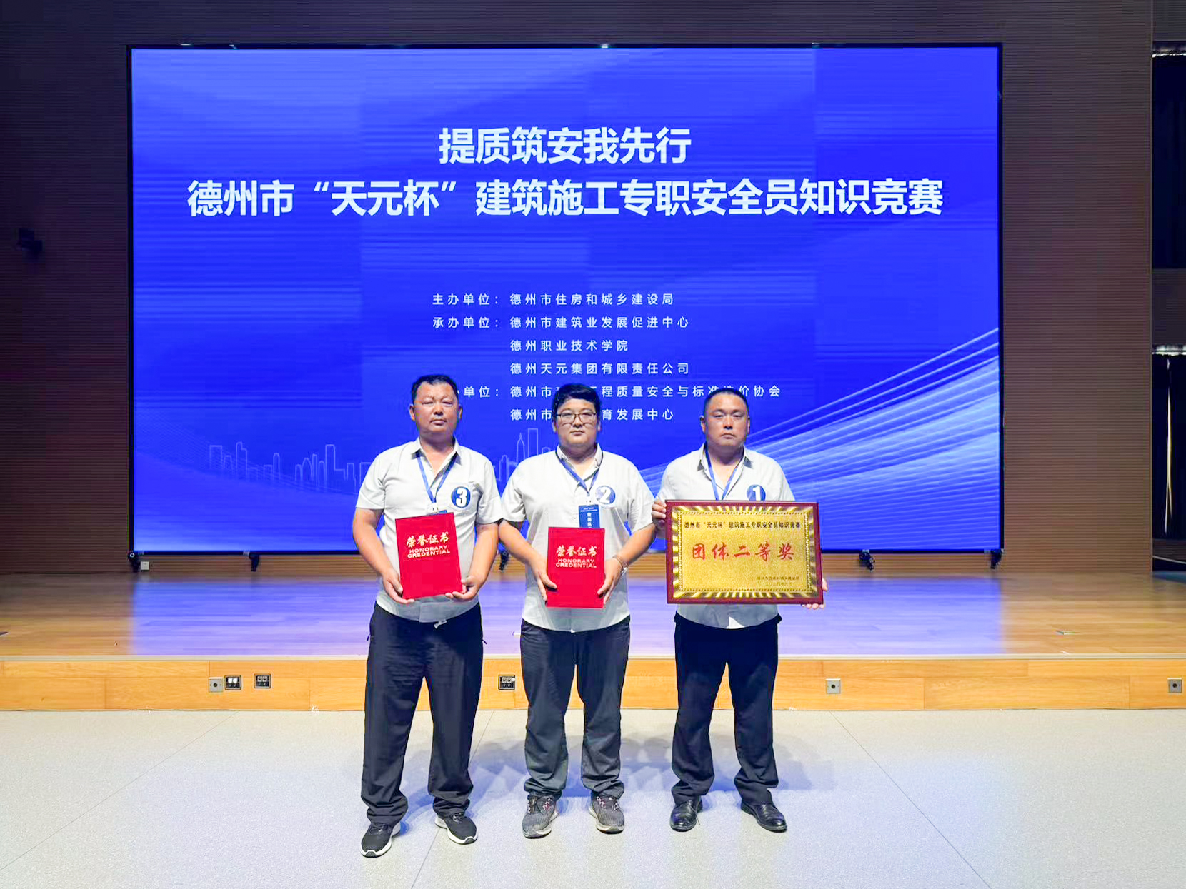 本次競賽共有來自全市建筑行業(yè)15支代表隊的45名選手同臺競技。天華實業(yè)集團臨邑金辰雲(yún)境項目部安全員劉美全、徐長潔、項田蒙三人代表臨邑縣住建局參與團體賽。比賽現(xiàn)場,三人沉著應(yīng)對,積極作答,展現(xiàn)出扎實的專業(yè)知識和業(yè)務(wù)技能,彰顯出良好的精神面貌。