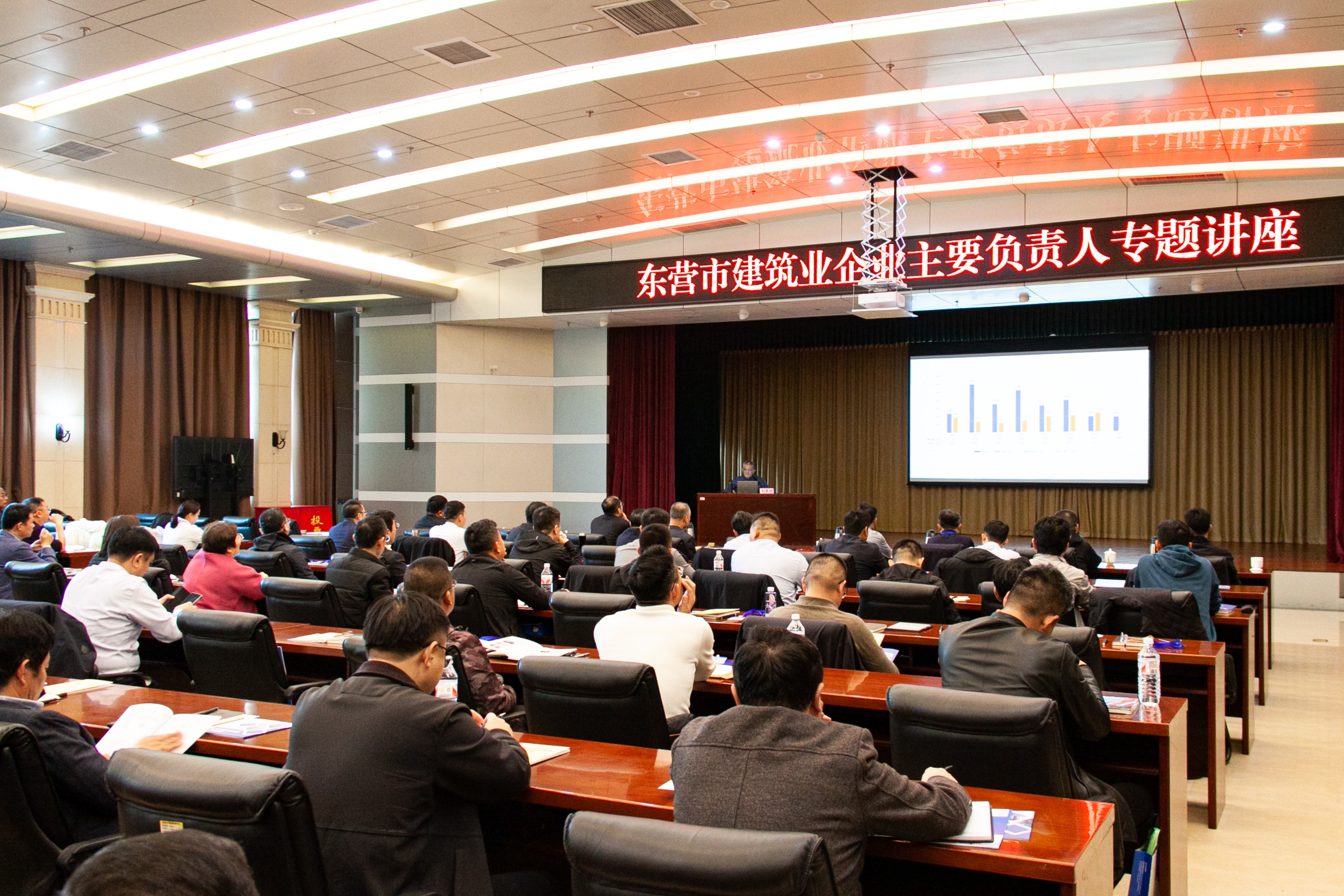 為進一步提升東營市建筑行業(yè)創(chuàng)新水平,增強企業(yè)核心競爭力,11月15日,由市建筑業(yè)聯合會、市市政工程協會、市建設監(jiān)理協會共同舉辦的建筑業(yè)企業(yè)負責人專題講座在東營市住房和城鄉(xiāng)建設管理局辦公樓多功能廳舉行。市住房和城鄉(xiāng)建設管理局黨組成員、三級調研員岳翠峰參加并致辭,市建筑業(yè)聯合會理事會會長、天華實業(yè)集團董事長閆國亮,全市房屋建筑企業(yè)、市政企業(yè)、監(jiān)理企業(yè)主要負責人共100余人參加。