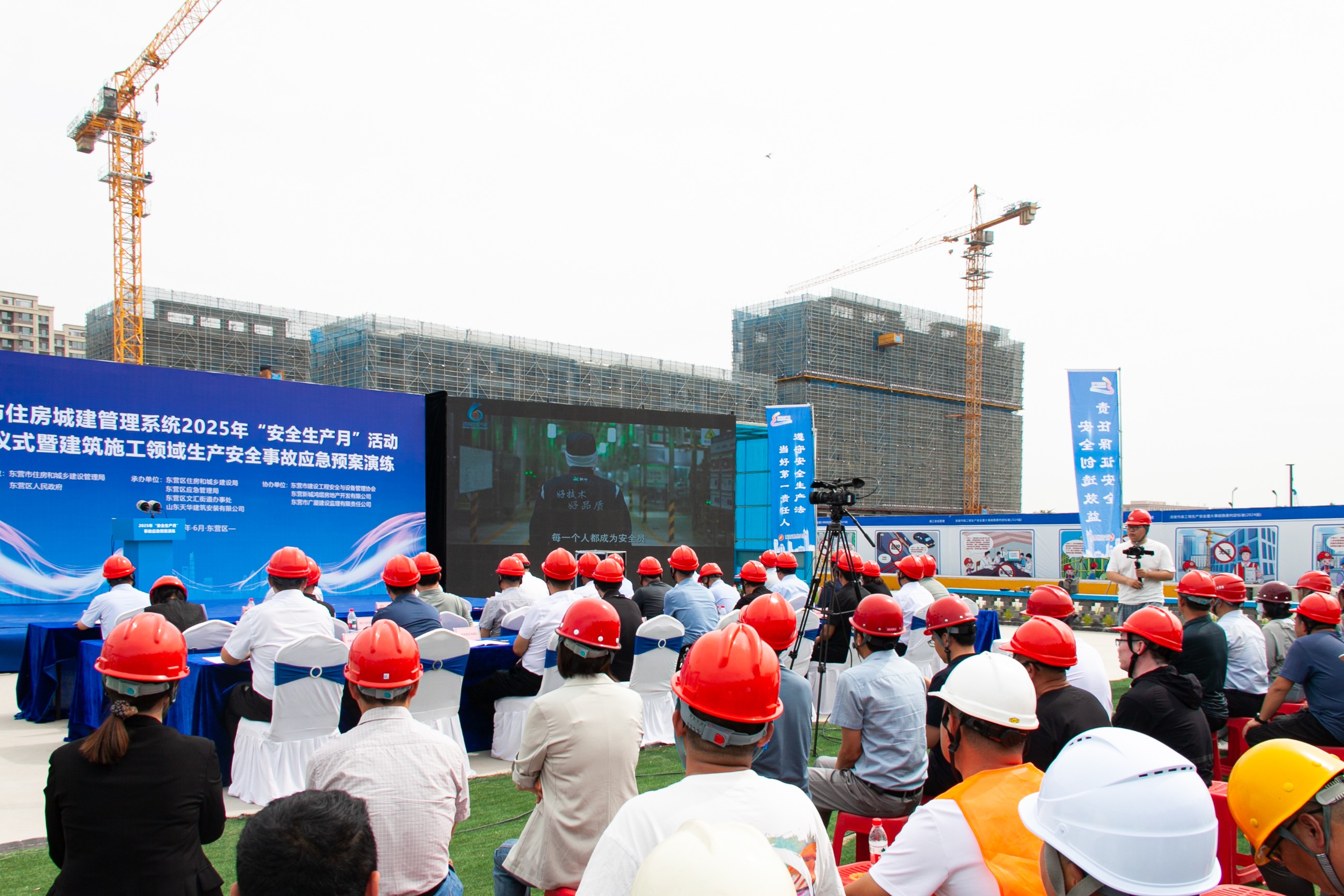 中共東營(yíng)市住房和城鄉(xiāng)建設(shè)管理局黨組書(shū)記張玉明,東營(yíng)區(qū)委常委、副區(qū)長(zhǎng)蓋濱,市住建局黨組成員、副局長(zhǎng)俞海泓,市市域治理運(yùn)行管理中心副主任王志秀,市建設(shè)工程質(zhì)量安全中心主任杜宇,東營(yíng)區(qū)住房和城鄉(xiāng)建設(shè)局黨組書(shū)記、局長(zhǎng)徐文明,東營(yíng)市建筑業(yè)聯(lián)合會(huì)會(huì)長(zhǎng)、天華實(shí)業(yè)集團(tuán)董事長(zhǎng)閆國(guó)亮出席活動(dòng)。市住建局有關(guān)科室單位負(fù)責(zé)同志,各縣區(qū)(市屬開(kāi)發(fā)區(qū)、省黃三角農(nóng)高區(qū))住建管理部門(mén)及有關(guān)科室、質(zhì)量安全監(jiān)管機(jī)構(gòu)主要負(fù)責(zé)同志,建筑業(yè)企業(yè)代表,部分在建房屋市政項(xiàng)目參建單位負(fù)責(zé)人參加。