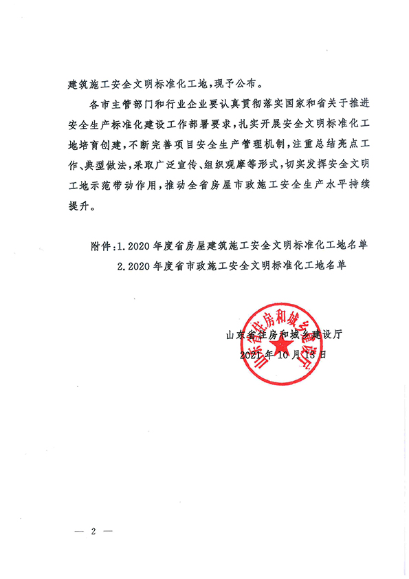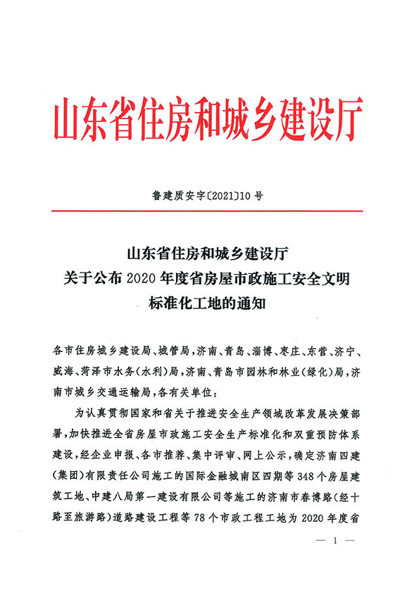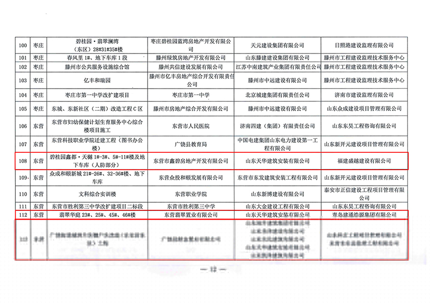 近日,山東省住房和城鄉(xiāng)建設(shè)廳公布了2020年度省房屋市政施工安全文明標(biāo)準(zhǔn)化工地,山東天華建筑安裝有限公司五項(xiàng)工程入選,分別是:碧桂園鑫都·天樾工程、翡翠華庭工程、廣饒街道城西片區(qū)棚戶區(qū)改造(樂(lè)安居?xùn)|區(qū))工程、西湖學(xué)都工程和匯富尚悅居工程。