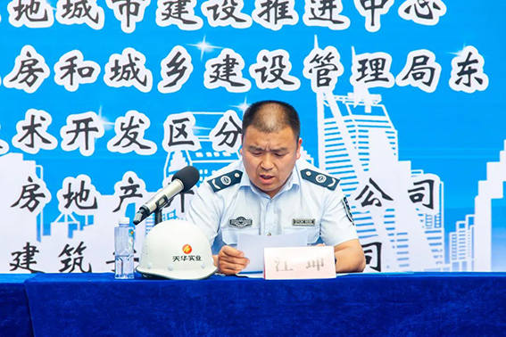 東營市住房和城鄉(xiāng)建設(shè)管理局東營經(jīng)濟技術(shù)開發(fā)區(qū)分局局長郇九湘就繼續(xù)做好房建市政施工安全工作做強調(diào)講話。