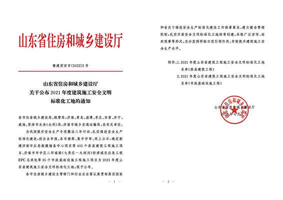 近日,山東省住房和城鄉(xiāng)建設(shè)廳公布了2021年度建筑施工安全文明標(biāo)準(zhǔn)化工地的評(píng)審結(jié)果,天華實(shí)業(yè)集團(tuán)區(qū)承建的碧桂園·鳳鳴春秋項(xiàng)目、小清河防洪綜合治理(村莊搬遷安置工程)項(xiàng)目、金暉家園項(xiàng)目被評(píng)為2021年度“山東省建筑施工安全文明標(biāo)準(zhǔn)化工地”。